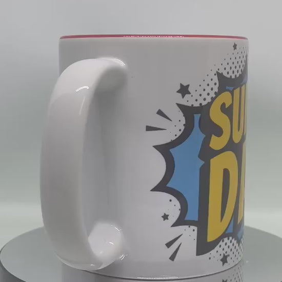 'Super Dad' mug, White ceramic mug with red inner.